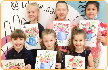 Мастер постоянно хвалит, мотивирует, вдохновляет на изучение новых техник в рисовании. Игровой формат позволит ребенку раскрепоститься в общении со сверстниками и найти новых друзей