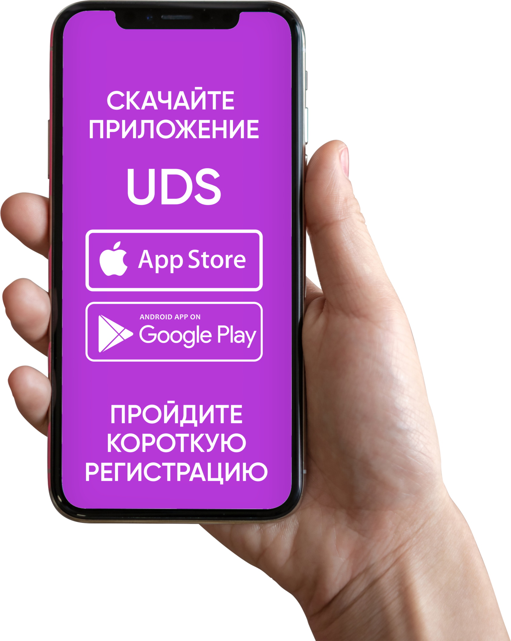 Скачайте бесплатное мобильное приложение UDS app в AppStore, Google Play или AppGallery на свой смартфон и пройдите короткую регистрацию (она занимает не более 2-х минут)